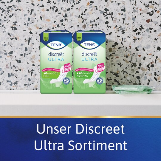 Unsere dünnsten TENA Discreet Einlagen heißen Ultra und bieten diskreten Schutz, den niemand bemerken wird. Speziell für leichten Urinverlust mit femininem Oberflächendesign.